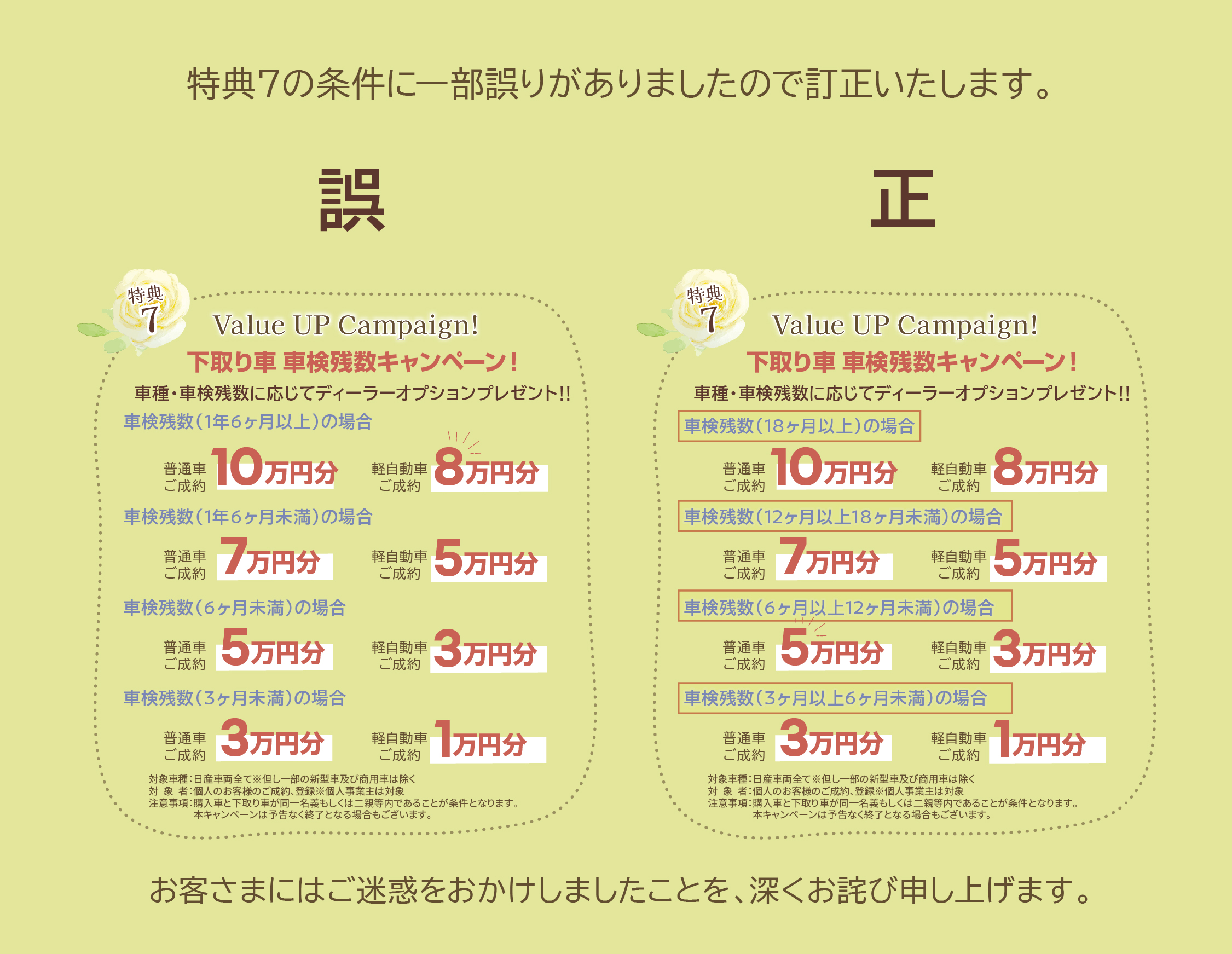 新生活応援フェア 一部誤記に関するお詫び